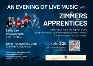 Following on from their very popular 2023 & 2024 performances for us, the Zimmers Apprentices are once again donating their services for Soroptimist International South Perth’s first fundraising event of 2025.